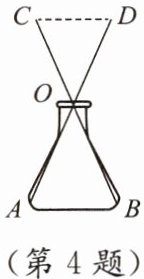 4. 数学课上老师布置了“测量酸奶瓶内部底面的内径”的探究任务,小熙想到了以下方案:如图,用图钉将两根吸管 AD,BC 的中点 O 固定,只要测得 C,D 之间的距离,就可知道内径 AB 的长度。此方案依据的数学定理或基本事实是______。