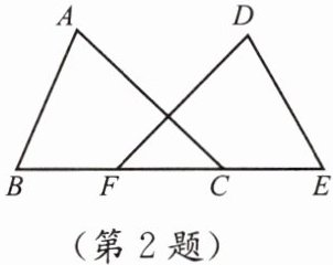 2. 工人师傅打算用一种金属材料制成如图所示的框架,已知∠B = ∠E,AB = DE,BF = EC,其中△ABC 的周长为 24 cm,CF = 3 cm,则制成整个框架所需这种材料的总长度为( )