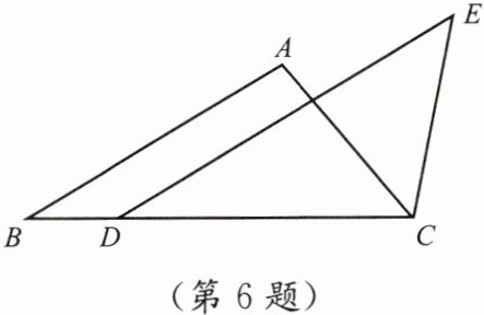 6. 如图,在 $ \triangle ABC $ 中,点 $ D $ 在边 $ BC $ 上,$ CD = AB $,$ DE // AB $,$ \angle DCE = \angle A $. 若 $ DE = 10 $,$ AB = 8 $,求 $ BD $ 的长.
