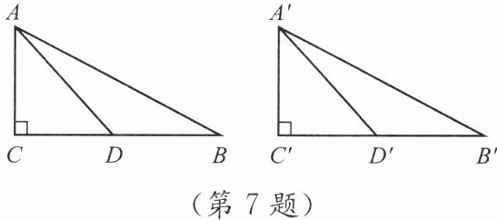 7. 如图,在$Rt\triangle ABC和Rt\triangle A'B'C'$中,$\angle C= \angle C'= 90^{\circ}$,$AC= A'C'$,$AD与A'D'分别为边BC$,$B'C'上的中线且AD= A'D'$.求证:$Rt\triangle ABC\cong Rt\triangle A'B'C'$.
