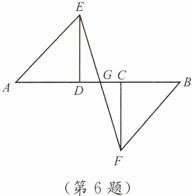 6. 如图,点$C$,$D均在线段AB$上,且$AD= BC$,分别过$C$,$D作FC\perp AB$,$ED\perp AB$,垂足分别为$C$,$D$,连接$AE$,$BF$,连接$EF交AB于点G$,$AE= BF$.求证:$DG= CG$.