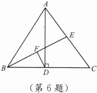 6. 如图,$ AD $ 是 $ \triangle ABC $ 的高线,且 $ BD = \frac{1}{2}AC $,$ E $ 是 $ AC $ 的中点,连接 $ BE $,取 $ BE $ 的中点 $ F $,连接 $ DF $. 求证:$ DF \perp BE $.