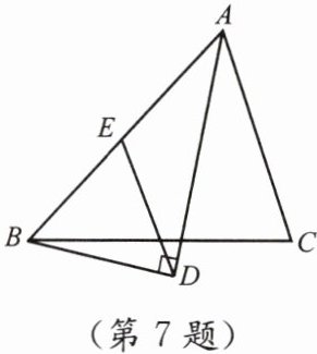 7. 如图,在 $ \triangle ABC $ 中,$ AD $ 平分 $ \angle BAC $,$ BD \perp AD $,垂足为 $ D $,过点 $ D $ 作 $ DE // AC $,交 $ AB $ 于 $ E $,若 $ AB = 5 $,则线段 $ DE $ 的长为多少?
