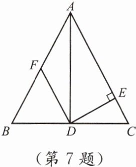 7. 如图,$AD$ 是 $\triangle ABC$ 的中线,$DE\perp AC$,垂足为 $E$,$DF$ 是 $\triangle ABD$ 的中线,且 $CE = 1$,$DE = 2$,$AE = 4$.