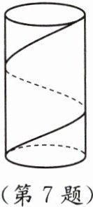 7. 如图,有一个高 18 m,周长 6 m 的圆柱形水塔,现给水塔制造一个螺旋形登梯,要求登梯环绕一周半到达顶端,则登梯至少多长?