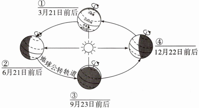 2. 读地球公转示意图(图中二分二至日均指北半球而言)和教科书第24页,完成下列各题。