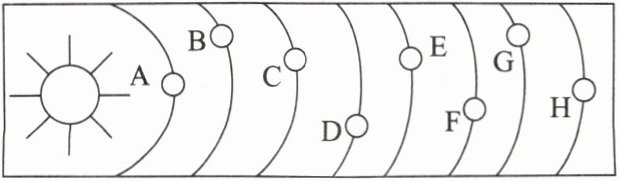 (1)在天文学上,水星、金星、火星、木星、土星是距离地球较近的行星。图中表示金星的是____,表示地球的是____(填字母)。