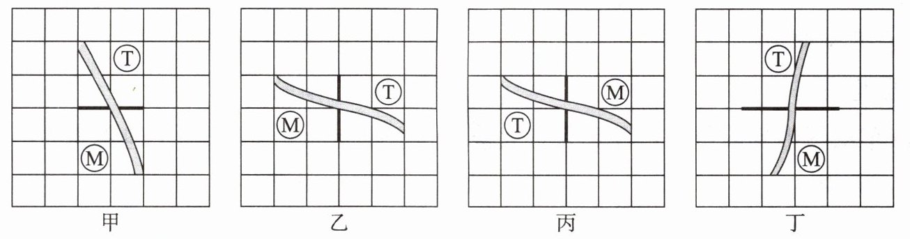 6. 某行政村东西长 2 千米,南北宽 1 千米,主干道从南向北通过,河流自东南向西北流过。该村拟修建村史馆和培训中心,分别位于该村西南部和东北部。甲、乙、丙、丁四幅图中,与上述信息相符的是( )