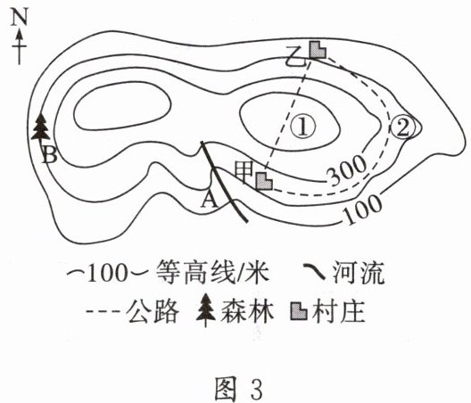 (3)图3是标注了地图“语言”的等高线地形图,其中缺少____。