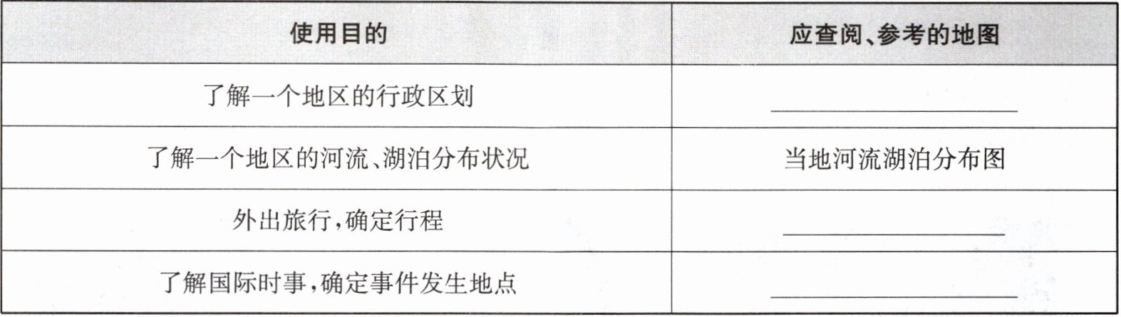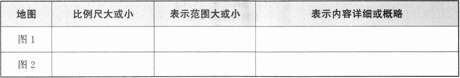 2. 认识比例尺大小与范围、内容详略之间的关系。读图,填写下表。