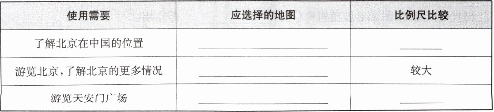 一、1. 当地行政区划图 目的地交通图 世界的国家和地区图 2. 小 大 概略 大 小 详细 3. 中国地图 较小 北京市旅游图 天安门广场导游图 更大