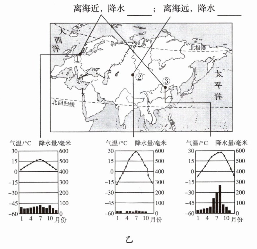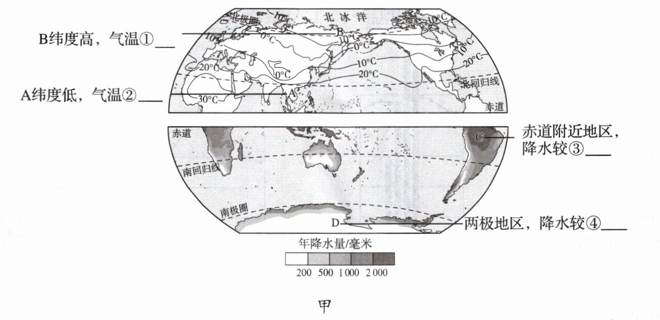 1. 读教科书第88页第一段,圈一圈影响一个地方气候的主要因素。