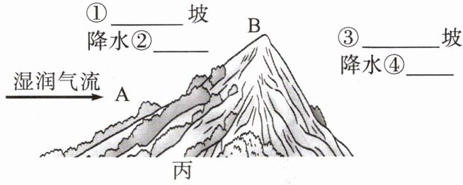 (3)①迎风 ②多 ③背风 ④少 ⑤高 ⑥低
