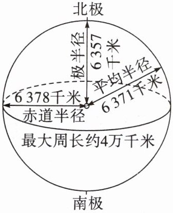 (2)地球虽不是一个正球体,但赤道半径仅比极半径长约21千米,将地球缩小制成地球仪,这点差距变得微乎其微,因此人们将地球仪制成规则球体。
