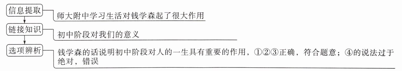 **【典型例题】** 钱学森回忆自己的中学生活时说:“6年师大附中学习生活对我的知识和人生观起了很大作用。”这说明初中阶段(
