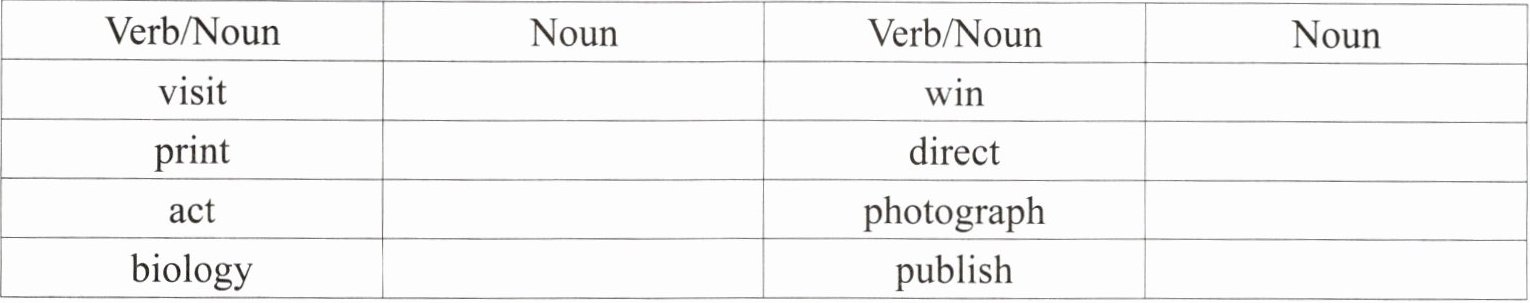 | Verb/Noun | Noun | Verb/Noun | Noun |