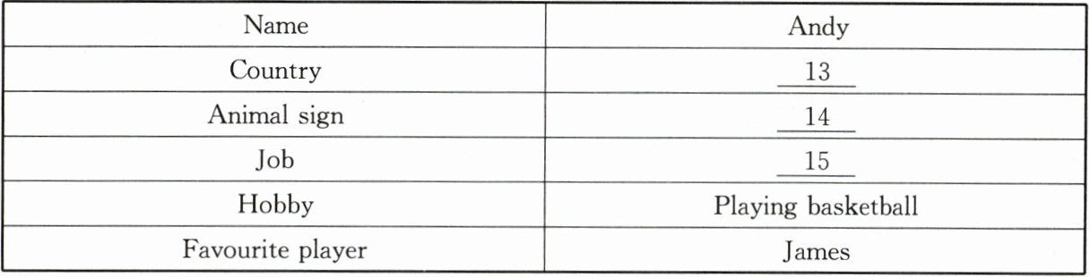 听第一篇短文,回答第13至15小题。请根据短文内容,选择正确答案,完成信息记录表。