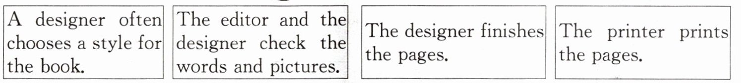 After an author makes the suggested changes, a designer may decide how the book will look. The designer may choose the size, shape, and type styles for the book. Some picture book authors create their own illustrations(插图). If not, an illustrator is chosen to create pictures for the book.