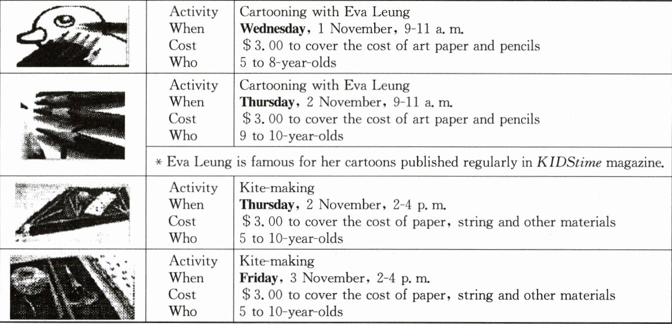 )3. Why are there two cartooning classes on the program?A. Because the classes are for different age groups.