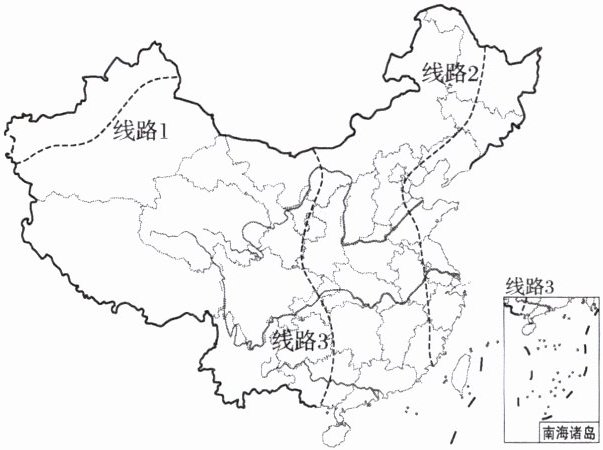 (填省级行政区名称)。(2)线路 1 所经过的省级行政区,其主要的少数民族是能歌善舞的