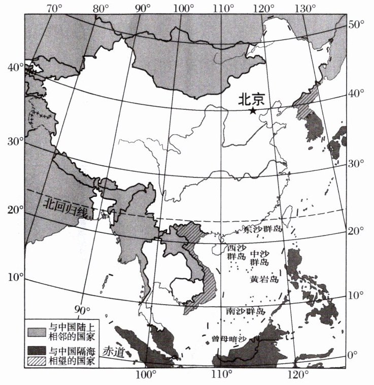 某电视台计划拍摄一部《中国万里行》纪录片,其中一套方案是乘船由北向南游览我国大陆海岸线。下图示意中国疆域及邻国,据此完成4~6题。