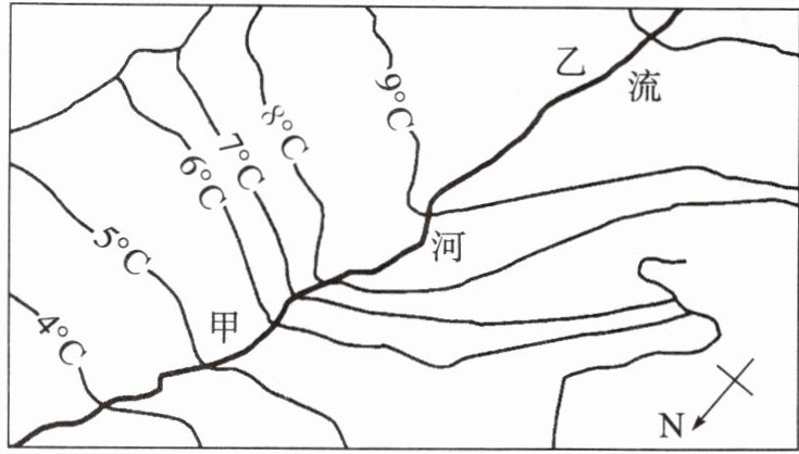 读我国某河流局部流域 1 月平均气温分布图,完成 5~6 题。