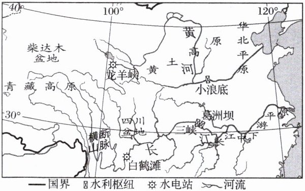 )①三峡水利枢纽 ②龙羊峡水电站 ③小浪底水利枢纽 ④葛洲坝水利枢纽