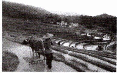 2025 年 5 月 1 日,我国某地举办了一年一度的开耕节。右图为当日水牛春耕照片。读图,完成 1~2 题。