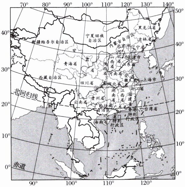 (2)× 6. 答案辽、吉、黑、内蒙古、甘或陇、新、藏、云或滇、桂。 7. 答案辽宁省、河北省、天津市、山东省、江苏省、上海市、浙江省、福建省、广东省、香港特别行政区、澳门特别行政区、广西壮族自治区。 8. 答案湖南省、湖北省、广东省、广西壮族自治区、河南省、河北省、山东省、山西省。不是每一组都相邻,山东省和山西省不相邻。