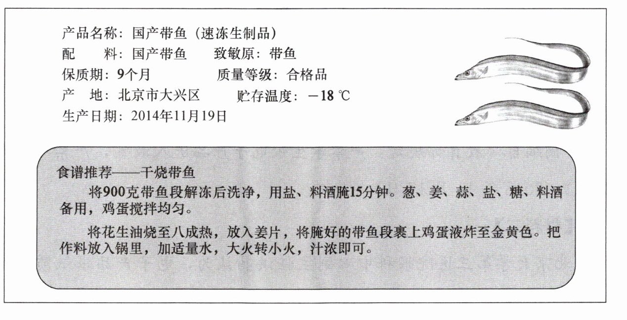 1. ×;理由:这袋带鱼的生产日期是2014年11月19日,保质期9个月,到2015年8月19日才过保质期,2015年1月29日还在保质期内。
