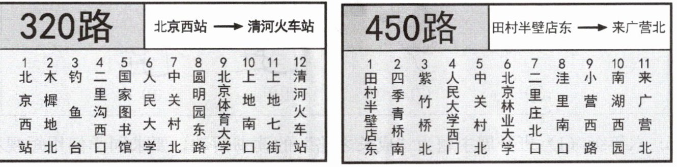 |1 田村半壁店东|2 四季青桥南|3 紫竹桥北|4 人民大学西门|5 中关村北|6 北京林业大学|7 二里庄北口|8 洼里南口|9 小营西路|10 南湖西园|11 来广营北|
