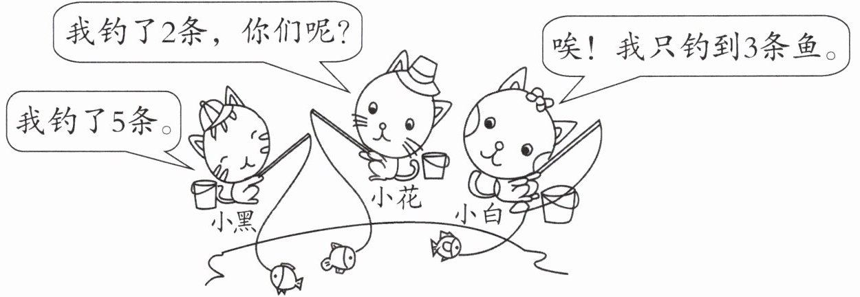 (1)小黑和小白一共钓了多少条鱼?
