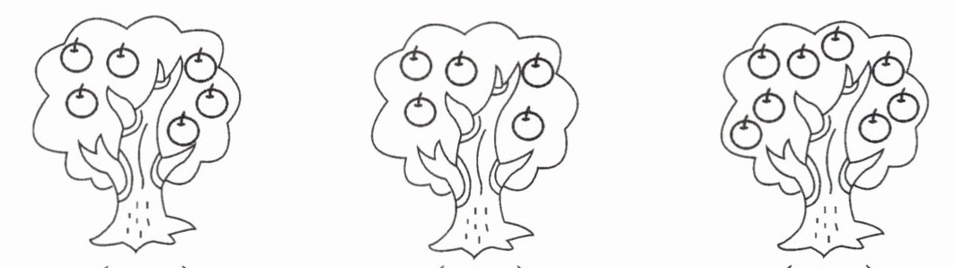 3. 在苹果最多的树下面画“√”,在苹果最少的树下面画“○”。