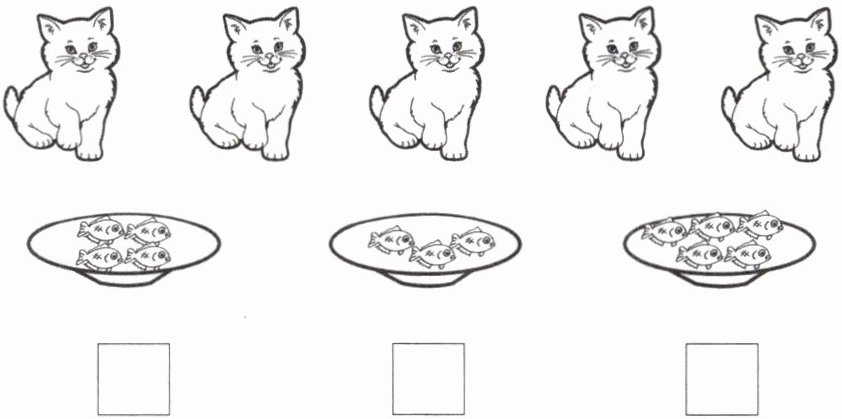 2. 每只小猫吃一条鱼,正好吃完,要选择哪个盘子?请在正确答案下面的□里画“√”。
