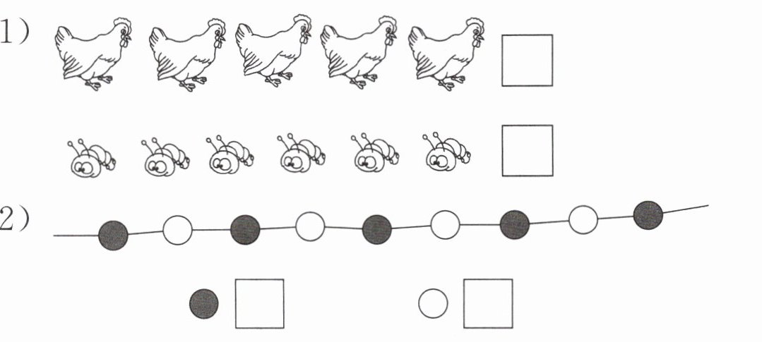 5 < 6,鸡少,在鸡后面的□里画“√”。