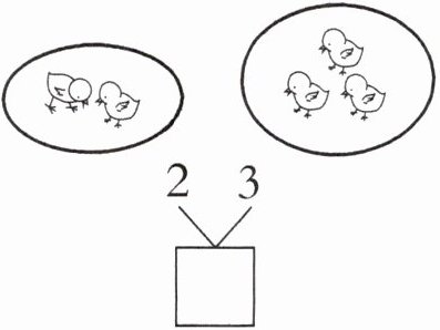 原来有2只,又来了3只,一共有(5)只。