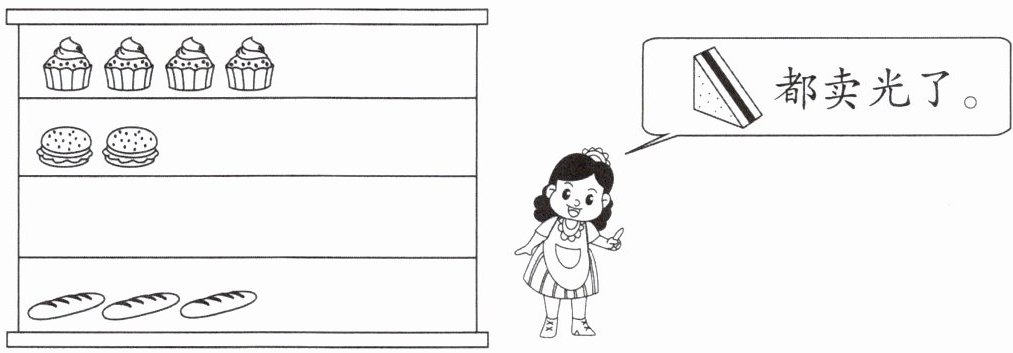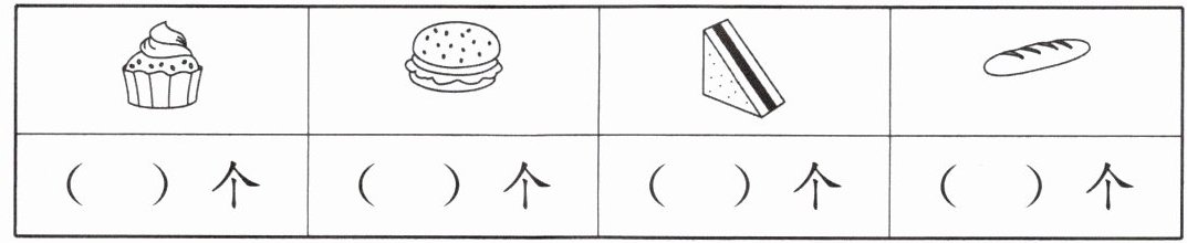 从下往上数,货架上第( )层食品剩的数量最多,第( )层食品卖的数量最多,卖了( )个。