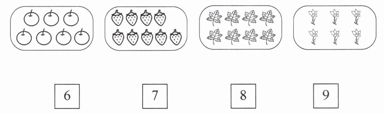 (此处应根据实际插图连线情况描述,因未提供插图具体连线方式,无法准确给出答案格式。若按常规,应是苹果连7,草莓连9,叶子连8,花连6)