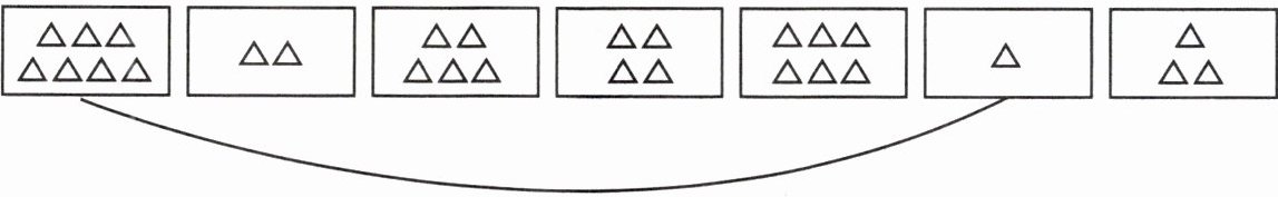 (1)下面哪两幅图中的△合起来一共是8个,请把它们连起来。