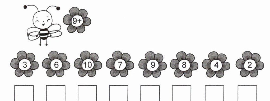 2. 用 9 分别加上每朵小花上的数,把得数写在下面的$□$中。