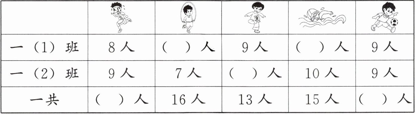|一(1)班| $8$ 人|( )人| $9$ 人|( )人| $9$ 人|