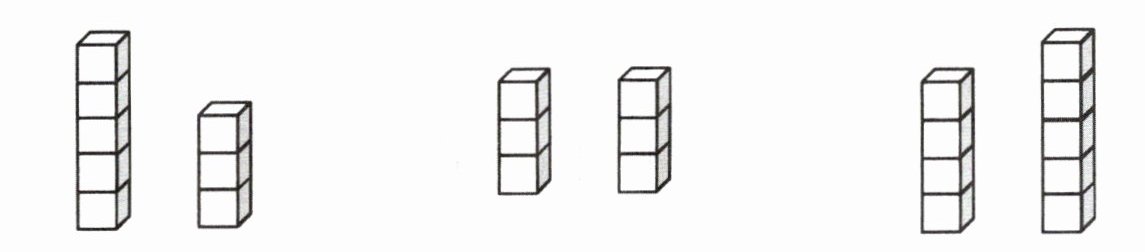 1. 左边两个长方体,右边三个长方体,中间符号为$◯$;左边两个长方体,右边两个长方体,中间符号为$◯$;左边三个长方体,右边四个长方体,中间符号为$◯$。