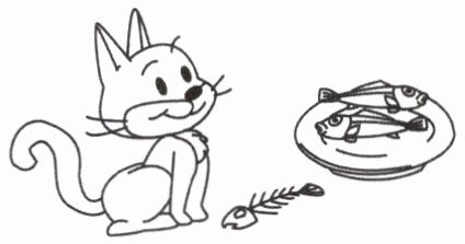 5. 一只猫吃3条鱼,还剩?条。$□◯□=□$(条)
