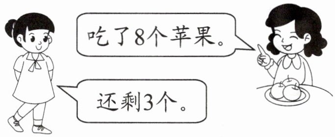 画图:(画8个苹果,再画3个苹果,用大括号括起来,标注“?个”)