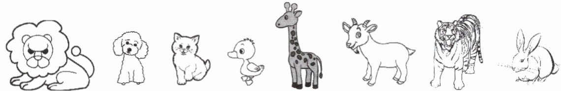 准备动物图片,按照下面的顺序进行排队,然后说一说。