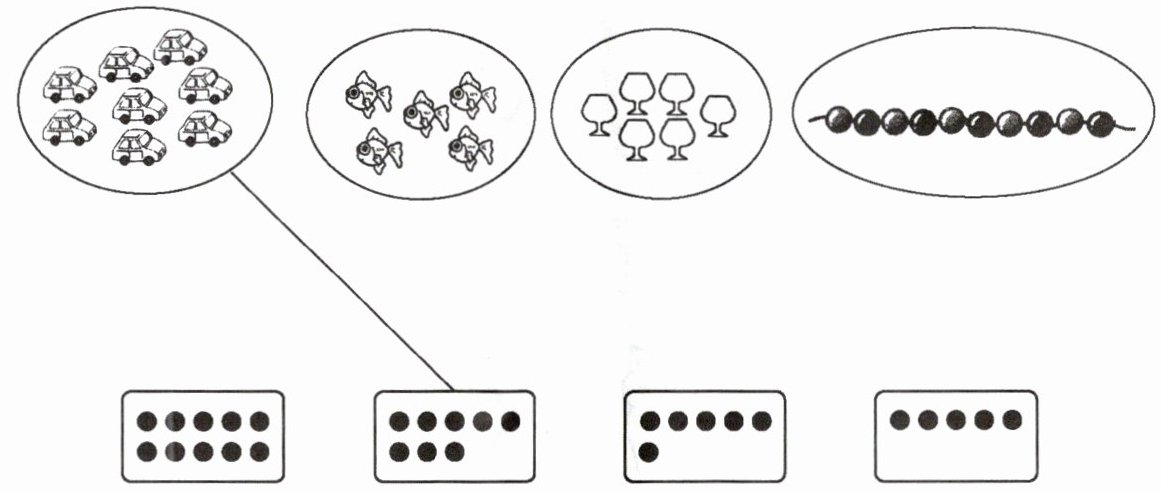 第三个椭圆(6个杯子)连接有6个点的方框;