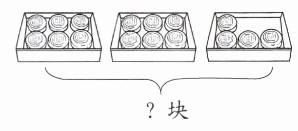 【解析】:插图1中,每组有5个,共4组,用乘法计算,5×4=20(个)。插图2中,前两盒各6块,第三盒5块,可列式6+6+5=17(块)。