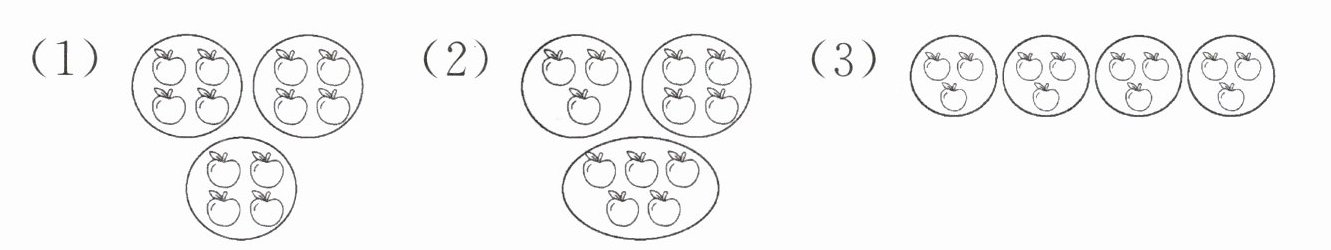 1. 把 12 个苹果平均分给 3 个小朋友,下面哪种分法对?在括号里画“√”。
