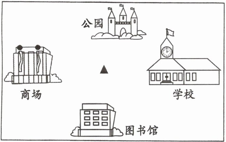 (1) 图中▲表示小明站的位置,他的东面是学校。