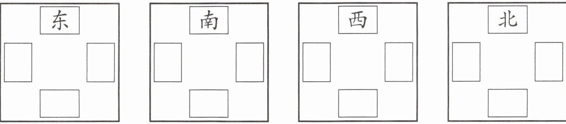 (3)(从左到右,每个方向牌从上到下、左到右)北 南 西;东 西 北;南 北 东;东 南 西